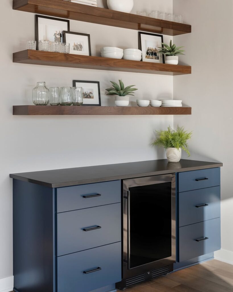- Introduce and fashion racks – Secure racks equitably on the divider, at that point beautify with jugs, dishes, and little plants for both work and charm.