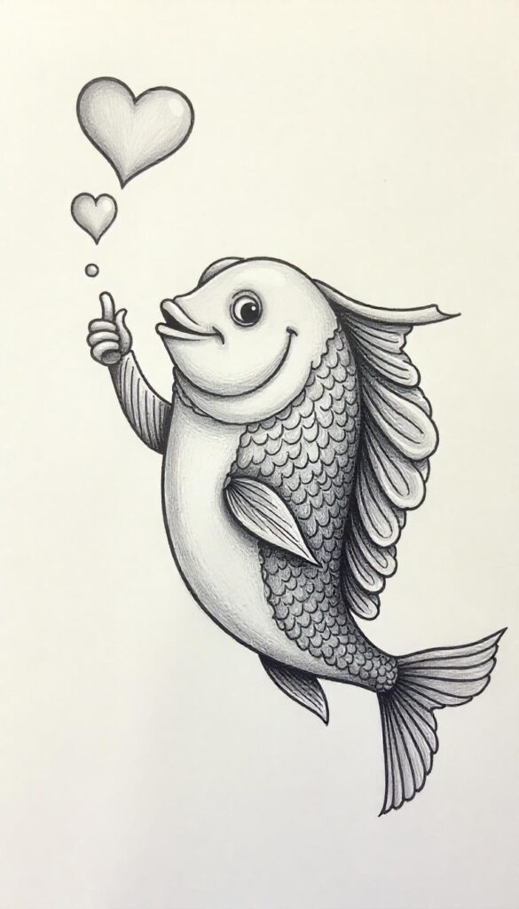 Cute Fish Drawing Ideas are idealize for craftsmanship partners who appreciate quirky and unusual outlines. These drawings regularly include enormous eyes, bubbly expressions, and cartoon-like highlights, making them perfect for stickers, kids’ books, or doodles. Charming angle drawing thoughts can be as basic as a grinning goldfish or as creative asana angle in a best cap.
