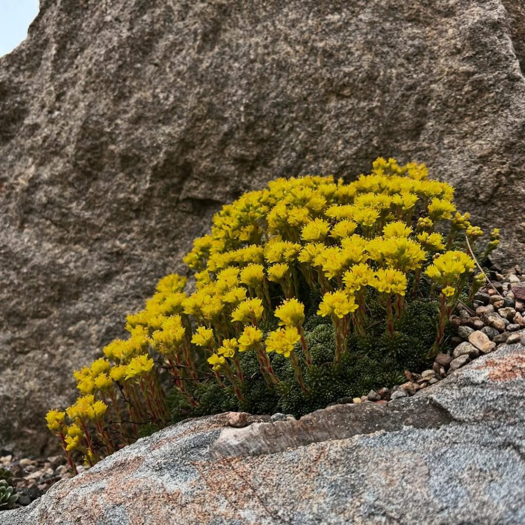 - Select drought-tolerant snow-capped blooms like sedum, saxifrage, and inching phlox.
