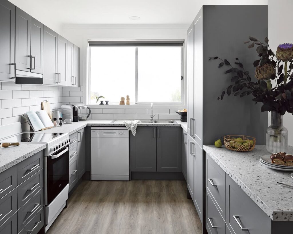 - Introduce cabinetry along two adjoining dividers shaping an L.