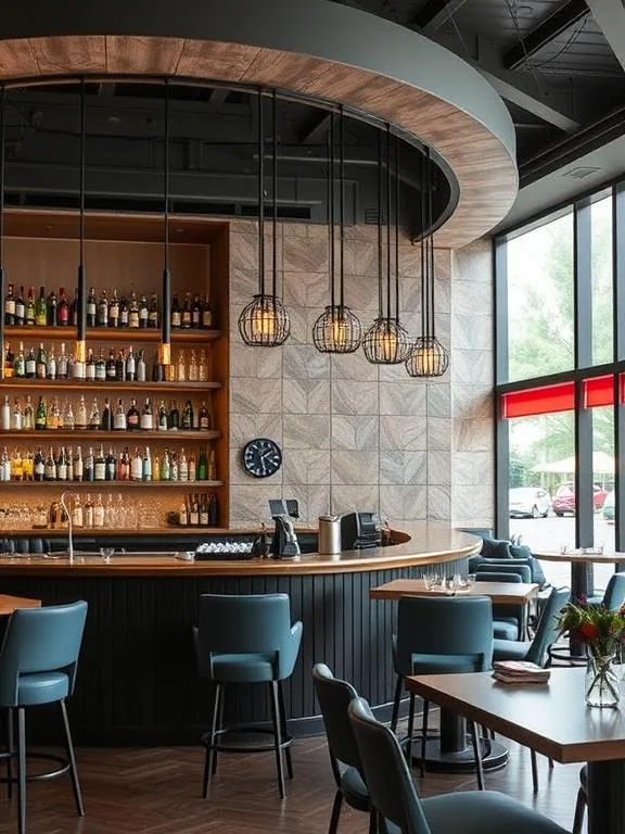 - Boho-Chic Bar – Eclectic furniture, macramé details, and vibrant colors.