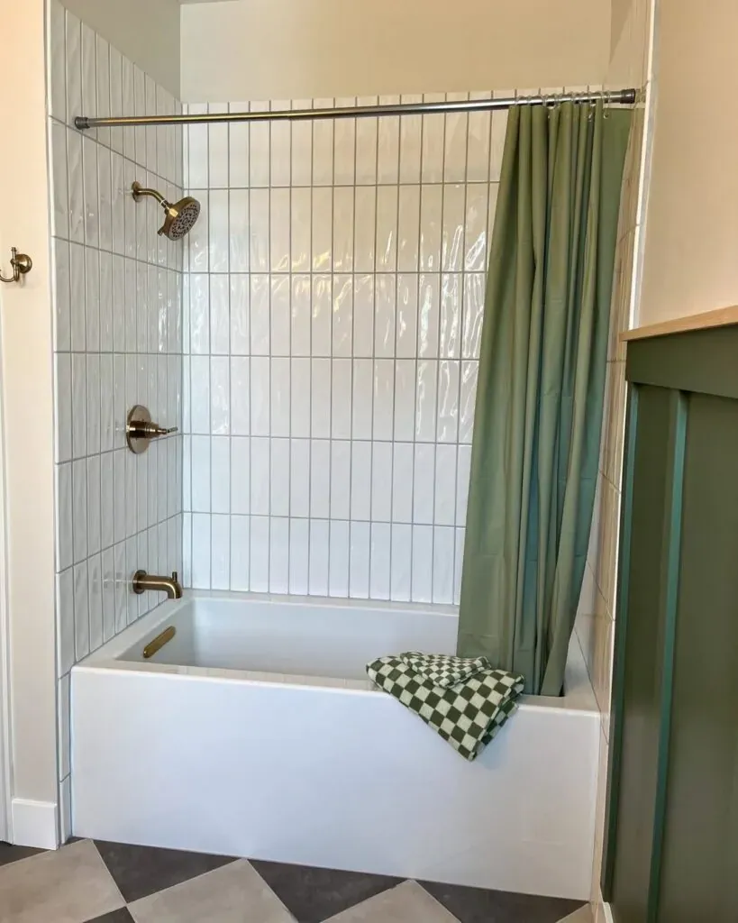 - Traditional shower curtain and tub