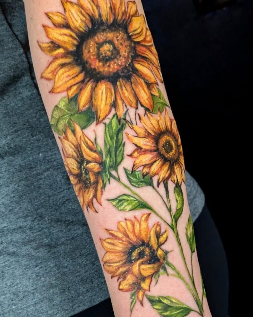 Sunflower Tattoo Ideas symbolize joy, life span, and inspiration. These dynamic sprouts make for outwardly striking tattoo designs due to their shining yellow petals and circular symmetry. Whether you select a moderate sunflower layout, a practical shaded adaptation, or one mixed with other components like bees, butterflies, or names, each sunflower tattoo brings a one-of-a-kind charm.